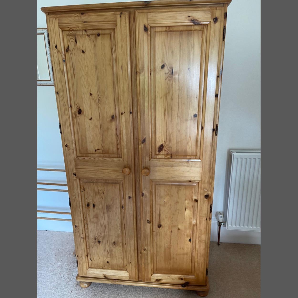 A sturdy light oak style 3 shelf floor standing cupboard - 5ft tall x 2.5ft width approx