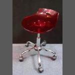 A QUALITY GROOVY ex JOHN LEWIS adjustable height red Perspex stool supported on 5 castors