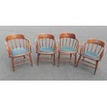 A set of four late 19th century honey oak captain's dining chairs with green leather seat pads in lovely condition