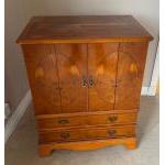 A yew wood veneer media cabinet with 2 drawers W70cm x D45cm approx