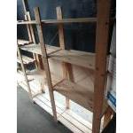 A double width 4 shelf wooden racking solution with metal strengthening rods. 150cm wide approx