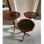 Four pie crusted wine/occasional tables, one with green leather top. Tallest 56cm approx