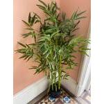 C1960s peacock effect fan tailed back bamboo armchair in good condition.