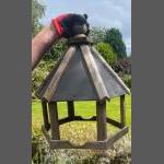 A pretty hexagonal garden bird house with no base. 30cm diameter with slate roof.