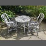 A resin garden ''sitooterie'' garden set with wrought iron effect comprising table and two chairs. Looks very classy.