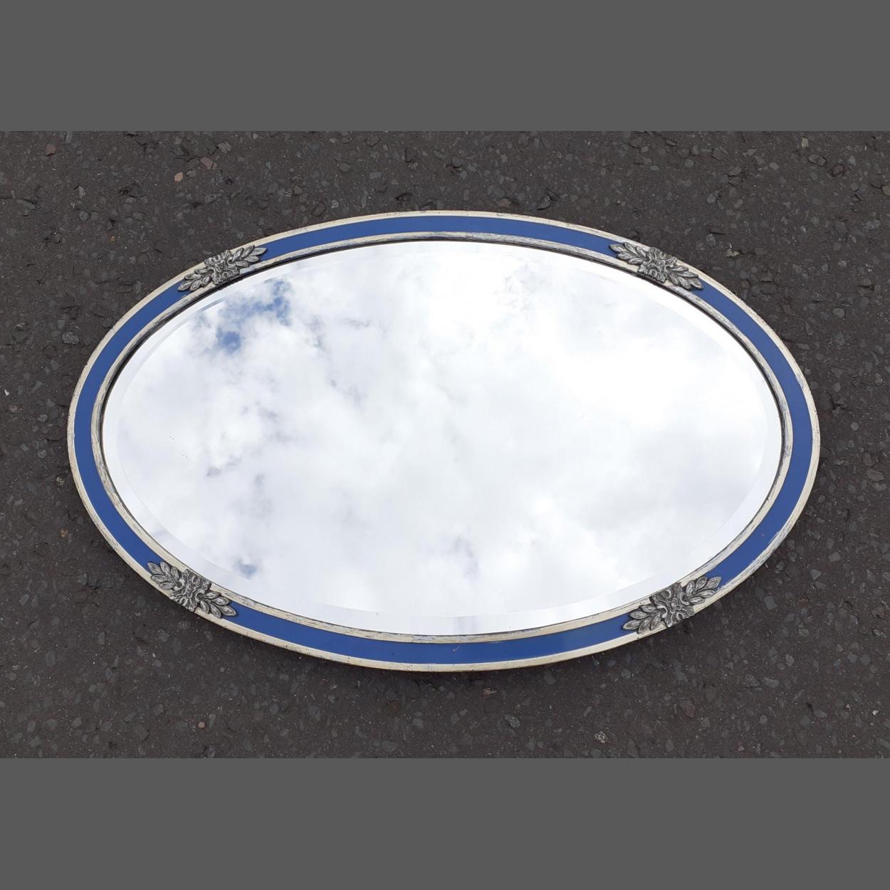 A stylish oval faceted edge mirror. 75cm tall. In good condition.