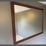 A large wooden framed rectangular bevelled wall mirror W134 x H104cm approx
