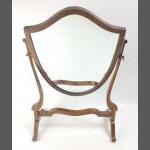 A vintage wooden framed, shield-shaped dressing table mirror standing approx 59cm high