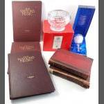A mixed lot comprising three Nations Music song books, two volumes of Robert Burns, A pretty 1994 inscribed Royal Brierley crystal rose bowl and an inscribed beautiful wine glass.