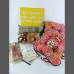 A mixed lot of decorative items to include wall motto, a bolster and 2 pretty seat pads, various curtain rings and tie-backs, a set of 3 bronze coloured balls and other decorative items