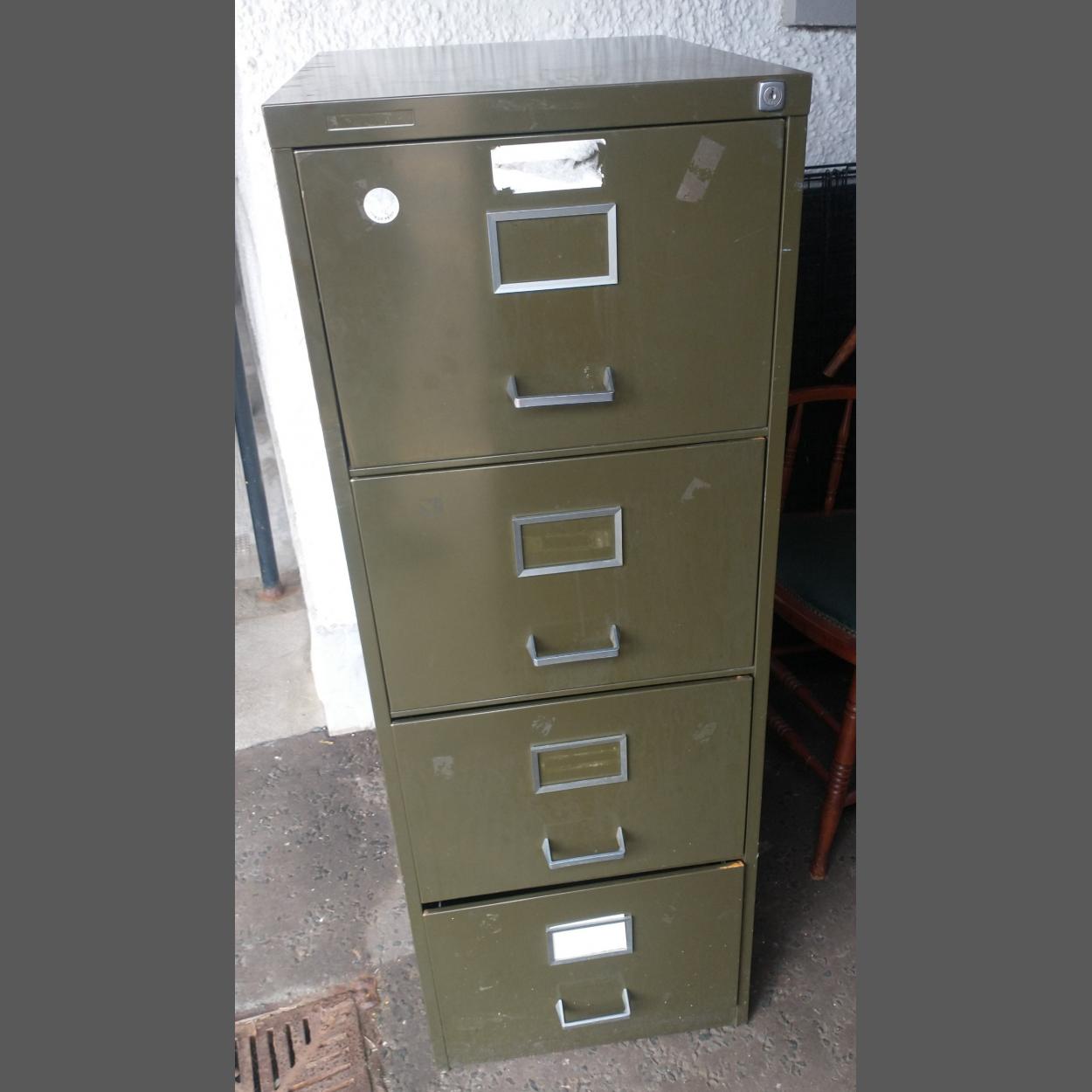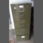 A green four drawer metal filing cabinet in good useable order. 132cm tall approx