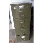A green four drawer metal filing cabinet in good useable order. 132cm tall approx