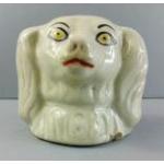 A rare Staffordshire King Charles Spaniel Wally Dog money box. 12cm approx with a slight chip to glaze. Scarce as there was really no way to get the money back out so many may have been broken.