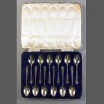 An exquisite boxed set of twelve sterling silver coffee spoons each 9cm approx. Sheffield 1937, silversmiths Charles Allen. Total weight 85g approx.