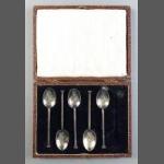 Boxed set of five sterling silver coffee spoons (1 missing). Hallmarked Sheffield 1924. Weight 30g approx
