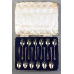 An exquisite boxed set of twelve sterling silver coffee spoons each 9cm approx. Sheffield 1937, silversmiths Charles Allen. Total weight 85g approx.