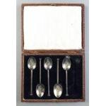 Boxed set of five sterling silver coffee spoons (1 missing). Hallmarked Sheffield 1924. Weight 30g approx