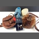 Highland wear accessories to include a leather sporran with Celtic knot design, a vintage cute fur sporran, a kilt pin set with mother of pearl, flashes and 2 pairs of kilt hose