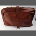 A vintage leather travel case missing one strap, 46x36x25cm approx
