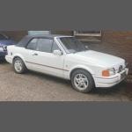 A FORD ESCORT XR3i CABRIOLET - original 1.6 injection engine 1986 Mark 4 in white with red pin stripe - mileage 128,506 miles on the clock V5 document in place with one key and XR3i keyring! UNUSUAL ORIGINAL NUMBER D963 OOD (DOOD!) The car currently has no MOT and SORN status. A fabulous project car and requires a new interior, the body work is good for its age with a few noted rust areas (as per pics) All standard spec including 'DOG-LEG ALLOYS' with historical wear and tear as you would expect Selling due to loss of storage facility - car has been lovingly garaged for 6 years approx and only recently (last 4 months) stored outdoors. The vinyl roof has a tear (as per pics) otherwise intact. The car engine was started recently and ran with no issues. Current owner has used and latterly stored the car over the last 12 years approx - the car has been serviced locally when MOT'd The car is 'offsite' and available for viewing - viewing is by appointment only - any interested parties should email the auction house in the 1st instance and we will contact the owner on your behalf to make arrangments to view and discuss any details. Email contact sales@peeblesauctionhouse.co.uk