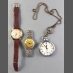 Three vintage timepieces to include Smith's stopwatch (no glass, not running), Sekonda 17 jewels watch runs for a little while and a Phillitime gent's watch not running. All require work.