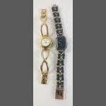 Two vintage ladies watches being a 1987 registered CHANEL WATCH (UB45001) with white metal and leather strap and also a metal GUCCI watch