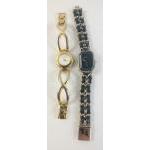 Two vintage ladies watches being a 1987 registered CHANEL WATCH (UB45001) with white metal and leather strap and also a metal GUCCI watch