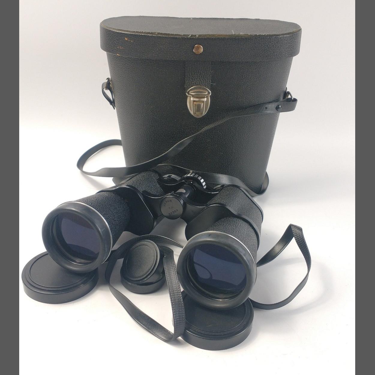 A pair of BOOTS 10x50 binoculars in case with lens caps, wide angle 7D, 122m/1000m