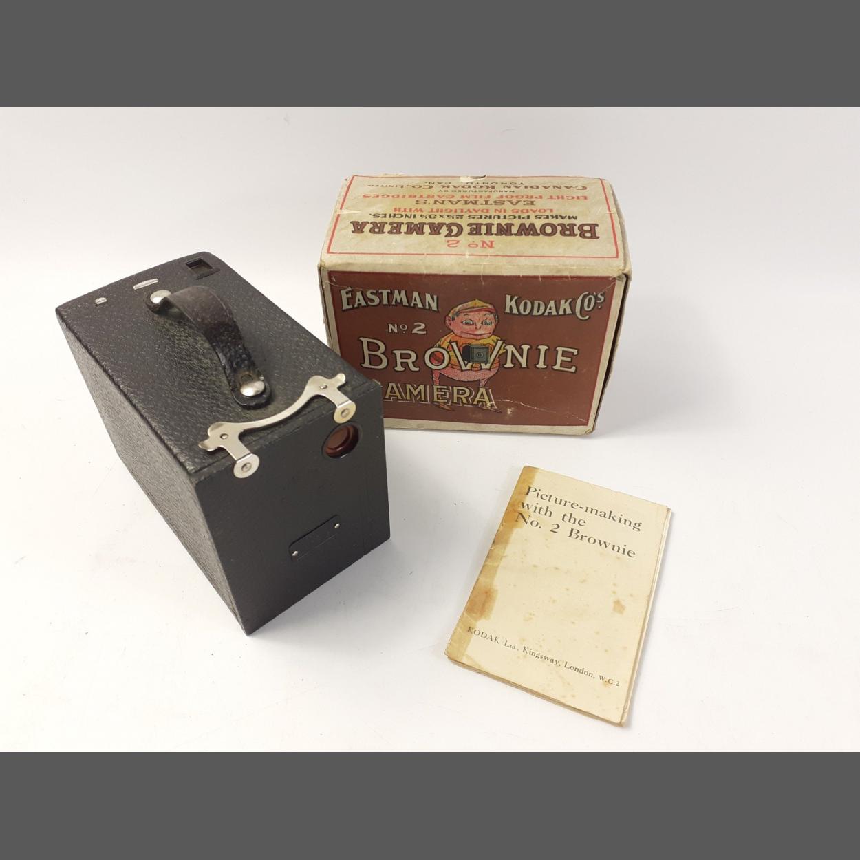 An EASTMAN KODAK No.2 BROWNIE Camera in a super box with instructions. The box is a little worn but still a very rare survivor.