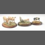 Three BORDER FINE ARTS models, all original Scottish made items to include a pair of Simmental Calves (168) from 1995, a Friesian Calf (JH101) scratching 1995 and a Brown and White Calf (JH82B) 1993 both from the James Herriot series. All complete and undamaged.