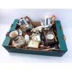A mixed lot to include two pieces of Piquot Ware, three quartz desk clocks and a quantity of trinkets and collectibles. Some interesting pieces.