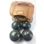 A set of four Taylor Rolph TYROLITE set of lawn bowls size 5 1/8, bias 3, comes in a tan carry bag