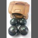 A set of four Taylor Rolph TYROLITE set of lawn bowls size 5 1/8, bias 3, comes in a tan carry bag