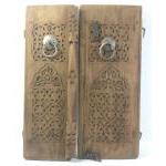 A pair of antique Yemeni wooden shutters approx 60x25 cm with opening inserts