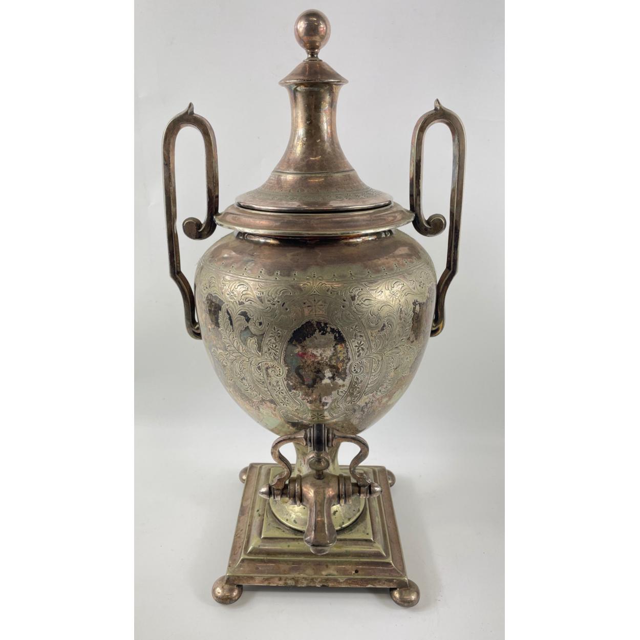 A VINTAGE large, ornate white metal SAMOVAR standing 50cm tall