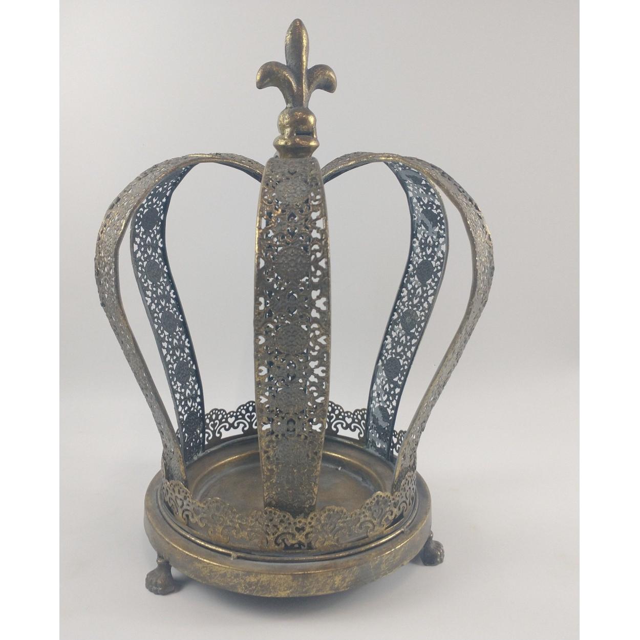 IMPRESSIVE - 'YOUR CROWNING GLORY' !! A large pierced metal crown candle holder with base on raised paw feet - 34cm tall x 23cm diameter approx