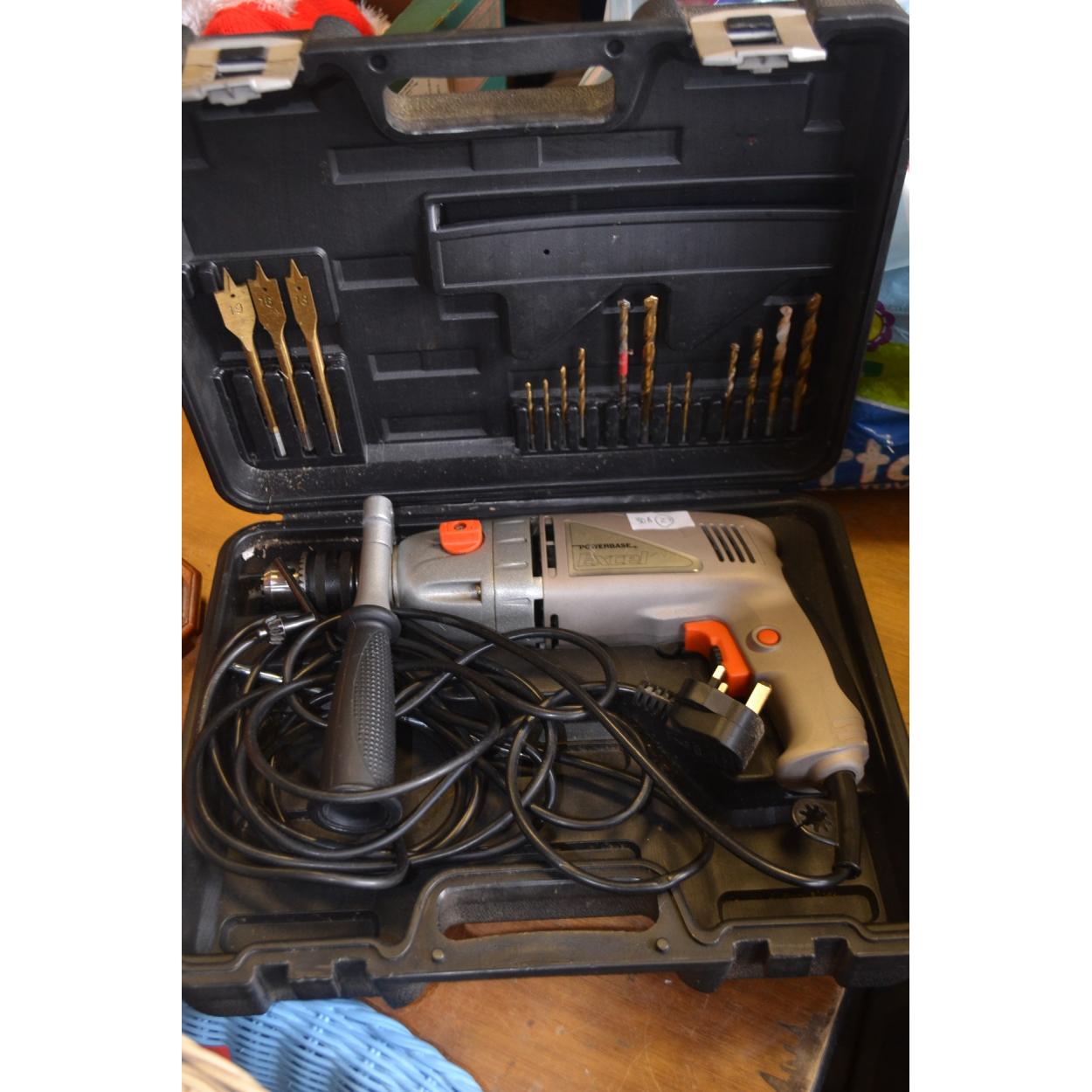 POWERBASE EXCEL LARGE ELECTRIC DRILL WITH SOME DRILL BITS IN ORIGINAL BOX