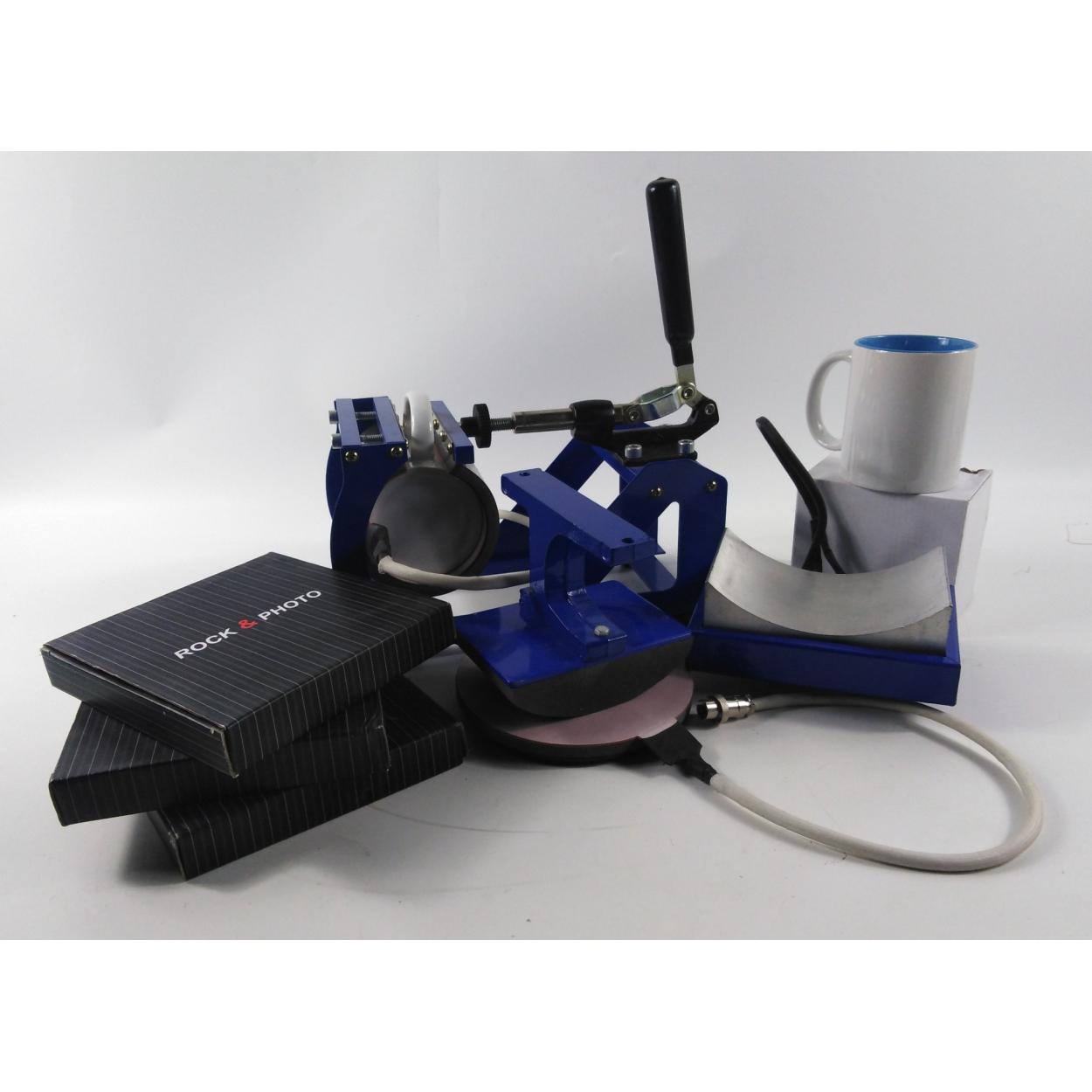 Ready to start a new business - this mug and picture transfer press is ready to go complete with 2 mugs and 3 slate picture bases