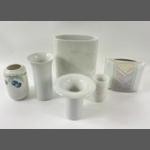 A small collection of German ROSENTHAL STUDIO LINIE china to include a vase (19cm), a small vase with tulip pattern (8cm), a white vase (14cm), a white vase with a wide lip (10cm), a vase with geometric pattern (13cm), plus a small Classic Rose vase with blue cherries from the ROSENTAHAL GROUP (11cm)
