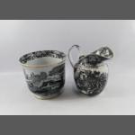 An unusual black and white Napoleonic battle scene jug (20cm high) and planter (17cm high, diameter 19cm)