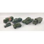 A group of vintage DINKY TOYS MILITARY VEHICLES to include a CENTURION TANK (651) (with tracks),an ARMY CAR (670), an ARMY WAGON (623), a MILITARY AMBULANCE (626), a LESNEY M3 PERSONNEL CARRIER (no 49) and a MATCHBOX King Size no 3, SCAMMELL 6x6 TRACTOR