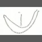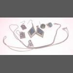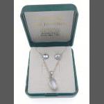 Nice little set of moonstone set pendant and earrings on white metal chain (L: 45cm approx)