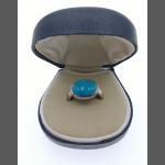 925 stamped silver ring set with large turquoise stone (15mmx 12mm) size M in a ring box