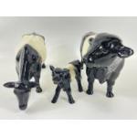 A COOPERCRAFT bovine family consisting of a bull (16cm tall), a grazing cow (13cm tall) and a calf with no label (10cm high)