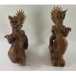 Two stunning hand-carved wooden DRAGONS one approx 40cm tall, the other 38cm, some slight damage but not obvious unless you're looking for it