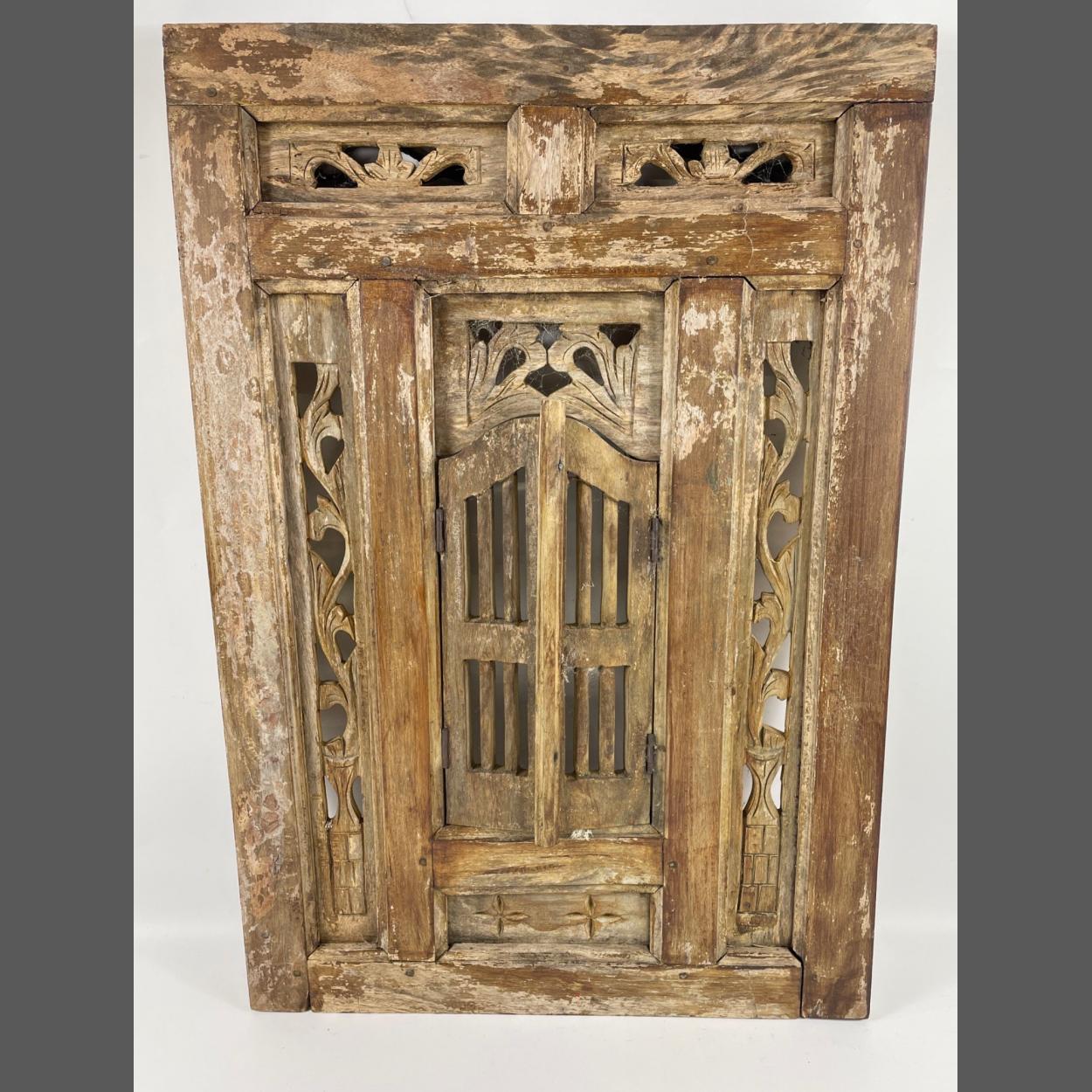 An ANTIQUE IRAQI hand carved and ornate framed window - dimensions 61cm height x 4-cm length approx - AN INTERESTING DECORATIVE PIECE