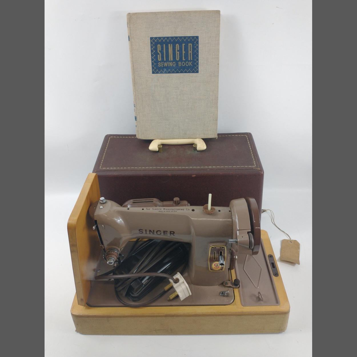 A vintage SINGER sewing machine, lockable and retains its key, plus a 2nd edition (1954) copy of the SINGER SEWING BOOK by Mary Brooks Picken