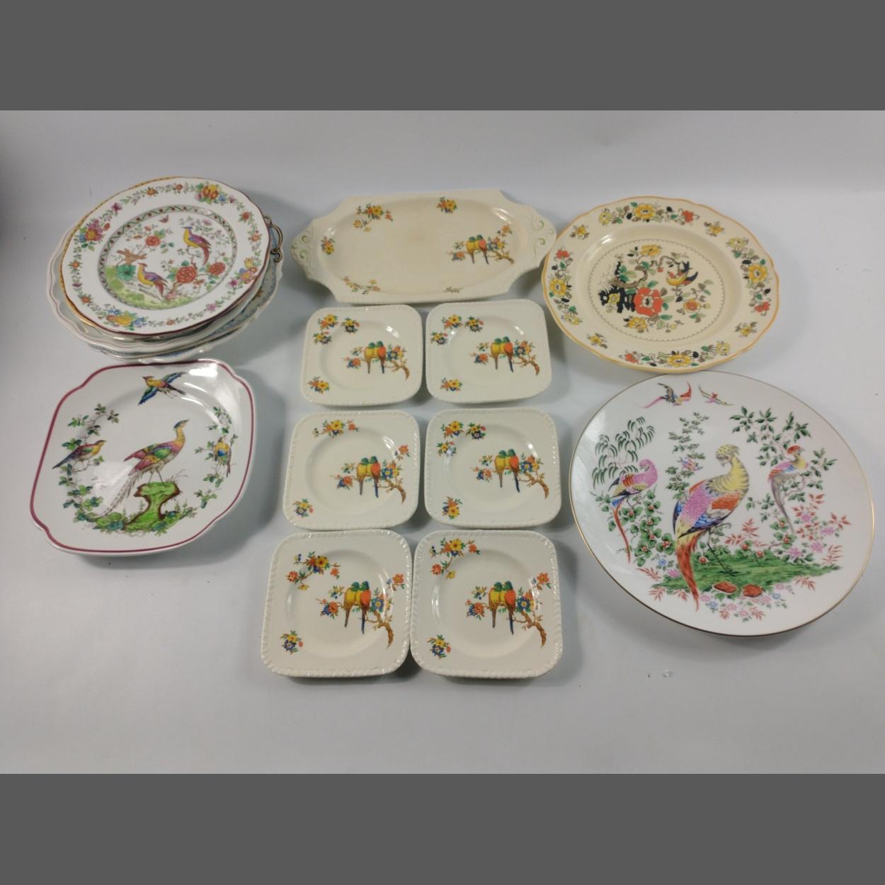 Quality Classic Rose flatware from the Rosenthal group of Germany to include 6 crescent salad plates, an unusal shaped ROSENTHAL salad bowl (29cm width), a white sandwich platter with gilt rim by ROSENTHAL STUDIO-LINIE (33cm long), 11 saucers, a shallow ROSENTHAL STUDIO-LINIE bowl decorated with flowers and gilt highlights (22cm dia), and a ROYAL DOULTON Cadenza sandwich plate (24cm dia)