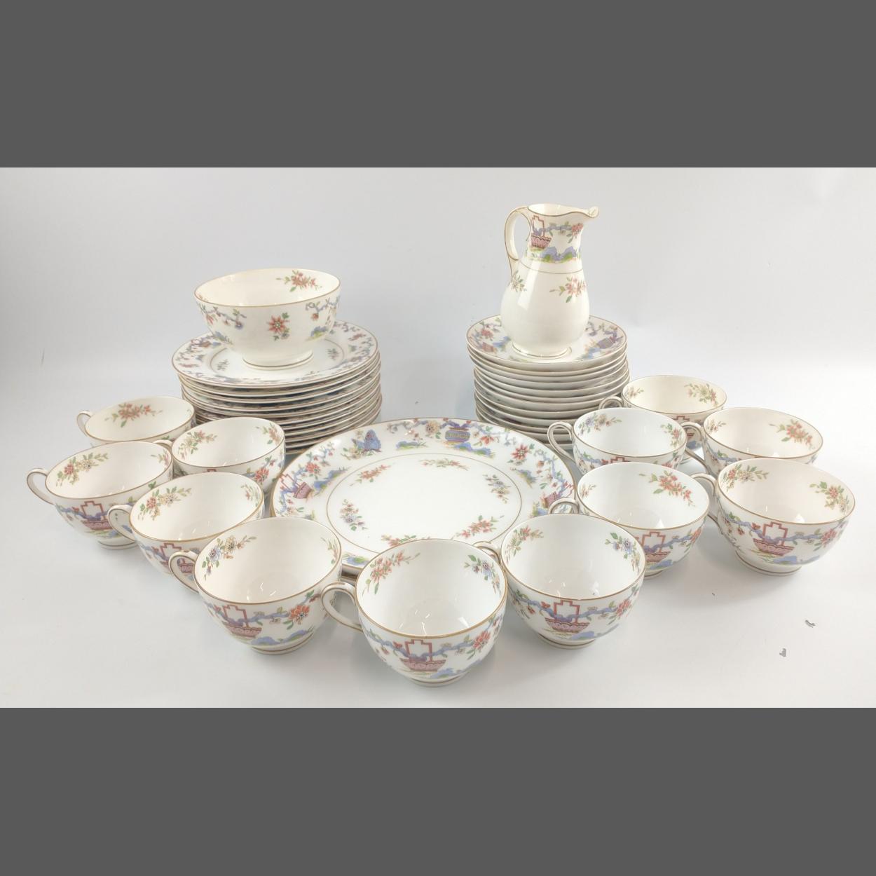 A part dinner service in ASIA by WEDGWOOD to include 6 soup bowls, 6 cups, 6 saucers (15cm), 6 saucers (16cm), 6 plates (15cm), 4 plates (20cm), 4 plates (23cm), 1 plate (27cm)