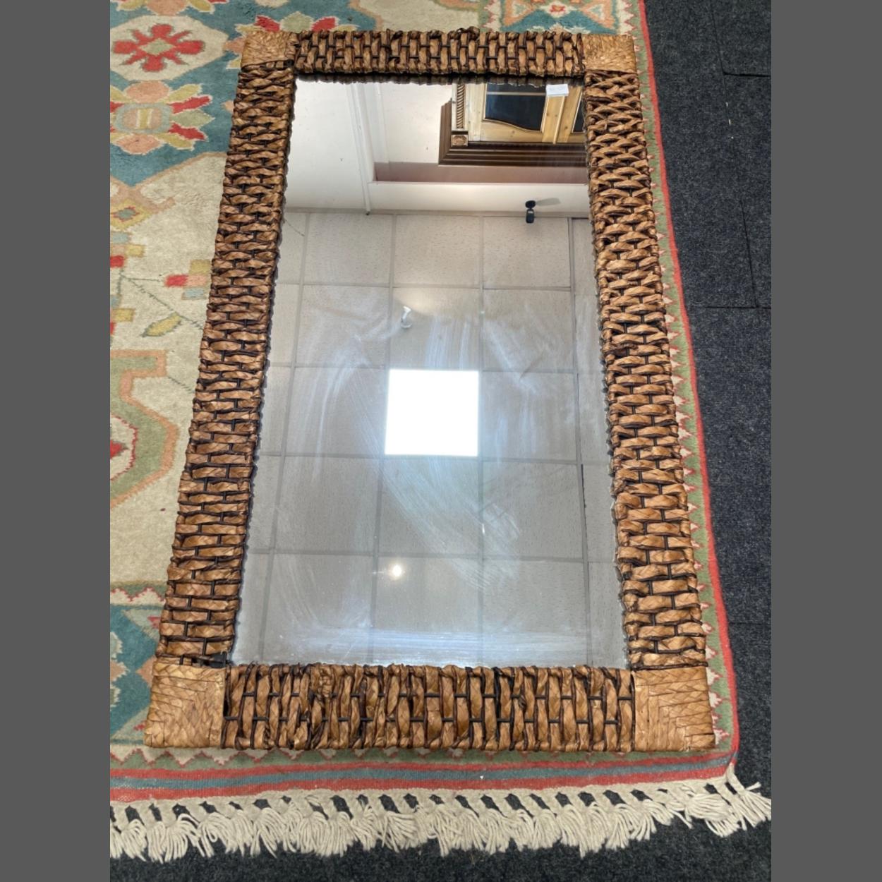 A modern rectangular raffia framed wall mirror dimensions 71cm length x 119cm height approx